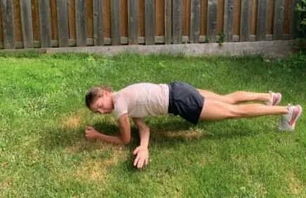 和标准的平板撑练习不同的是,本次介绍的这项练习在摆出标准姿势之后,先将右手从胸腔下方穿过到身体的另一侧,此时只有左臂在支撑身体。保持这个姿势30秒钟后,再换另一侧进行进行。