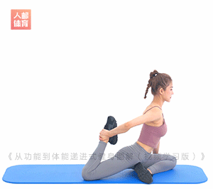 躯干向右旋转,同时左臂发力,将右腿压向左侧,至右侧臀部和腿部外侧有拉伸感,保持该姿势20~30s,换另一侧重复动作。