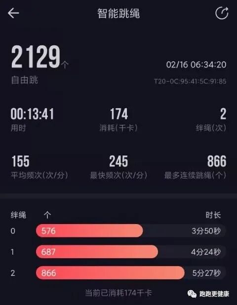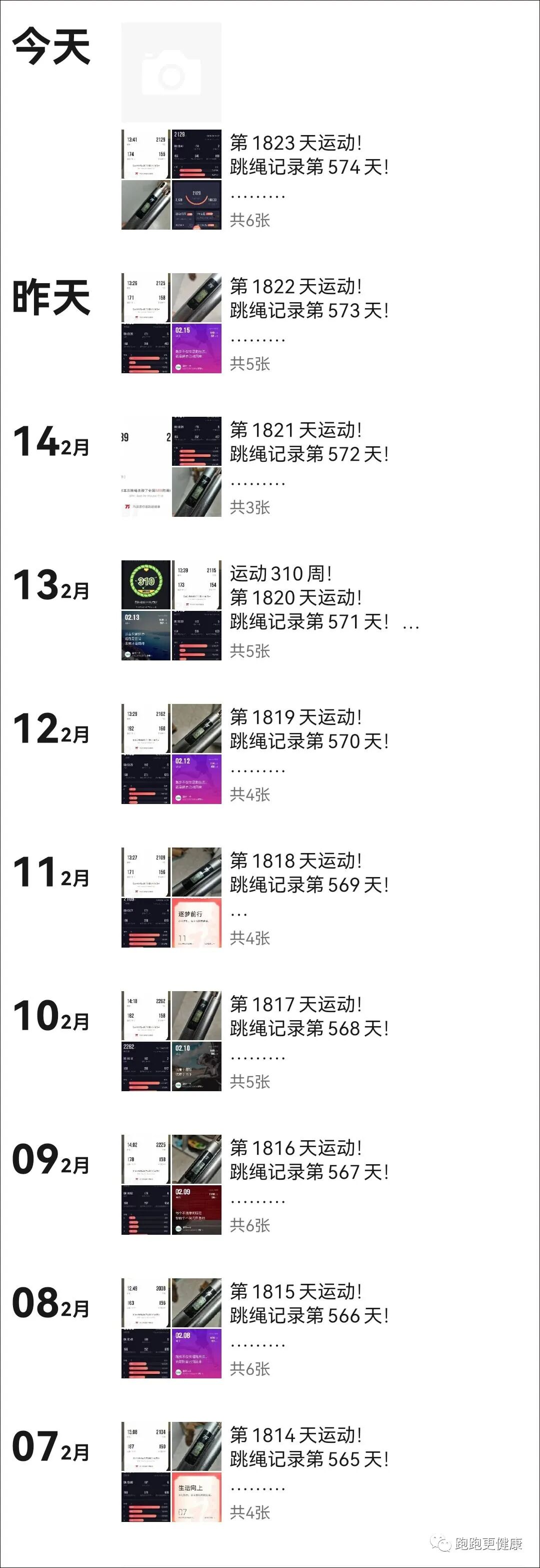 其实,这个数据只是我这一根跳绳的数据,在这根跳绳之前,我就已经跳了一年了,跳绳的累计数量早就过了100万了。那时跳绳没有现在这么规律。每天一千两千三千没定,心情好状态好就多跳点,反之就少跳点,因为那时的运动主要还是以跑步为主。而现在反过来了,现在的运动主要是以跳绳为主。