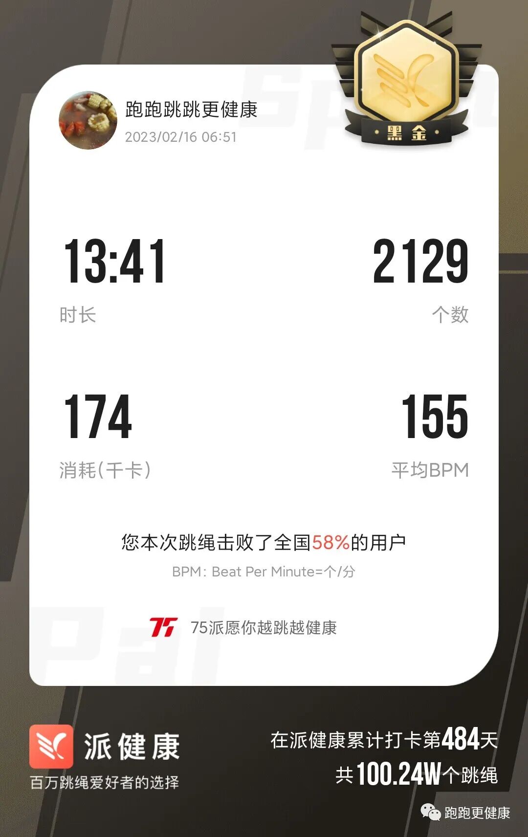 当然,这也算是我跳绳运动以来的一个小小的突破,就像我跑步累计里程达到1万公里的时候,那种心情是一样的,有点小小的激动,满足了我大大的虚荣心。