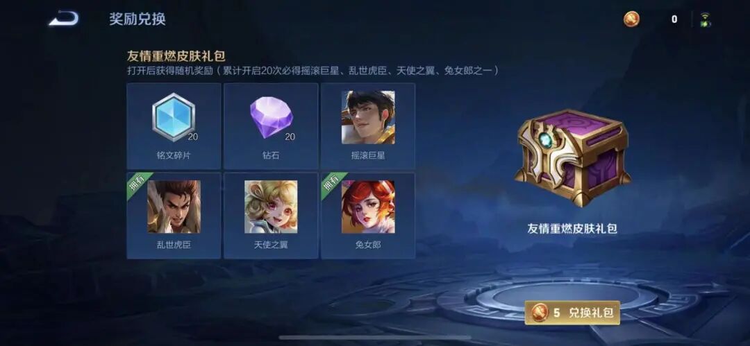 虽然王者荣耀自开年以来,赠送给了玩家很多皮肤,但是一些老玩家还能够额外领取一款皮肤哦。没错,就是这个友情重燃的活动,玩家能够通过日常任务,来获取友情币。同时,在使用5个友情币的话,是可以获得一个皮肤礼包的哈,这里面是有四款永久皮肤。其中,嬴政和孙膑的皮肤都是属于888品质,所以永久皮肤4选1,还是首推这两款高级皮肤的哦。所以,想要获得永久皮肤的玩家,还是不要错过这个活动哈。
