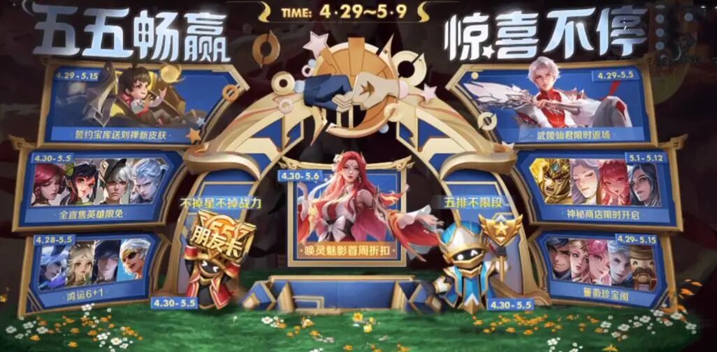 五五开黑节虽然改名了,但是每年的活动质量还是可以的。比如说五五朋友节中必定会上线的,就是蔷薇珍宝阁和神秘商店了。另外,免费的热门史诗皮肤也是能够限时使用的哦。另外一方面,说到王者荣耀五五朋友节的专属皮肤,去年是由经过投票而产生的貂蝉获得,同时还有刘禅的勇者皮肤免费获取。而今年的五五专属皮肤爆料中,已经是确定了太乙真人的火锅勇者皮肤,按照以往的惯例,应该是活动免费获得的。与此同时,王者荣耀五五朋友节每年都是会提前开启的哦,今年也不例外。