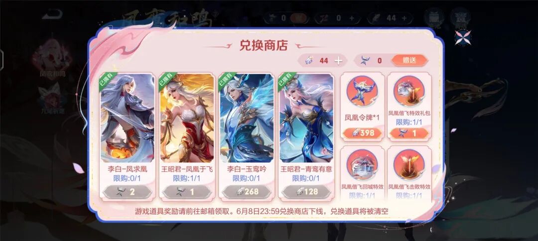 在去年的时候,王者荣耀是首次对凤求凰夫妇进行抽奖返场,当时入手的玩家应该不在少数吧?而今年的520返场活动中,王者荣耀也是新增了一些内容,那就是凤求凰星传说和凤凰于飞的星元史诗哦。没错,从该皮肤的造型来看,色调从原本红白调整为蓝色。同时,在获取条件方面,也不再是紫星币兑换,而是直接进入兑换商店,只能通过凤凰令牌或者是凤羽道具获取哦。在小编看来,这四套皮肤的总价多少,想必很多玩家都想知道吧?