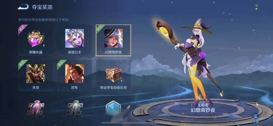 众所周知,王者荣耀周年庆的限定皮肤将在12号返场,但是在本周的更新当中,天美将积分夺宝进行了调整。达摩的拳王皮肤换成了王昭君的奇妙幻想夜,要知道,这两款皮肤当初都是六元限定的,后来被天美调整获取方式,进入到了积分夺宝当中。当然了,这次王昭君限定返场,获取难度其实并不低,毕竟是要看玩家运气的啊。要是五连抽能直接抽到王昭君幻想奇妙夜的话,也是美滋滋啊,你们说呢?