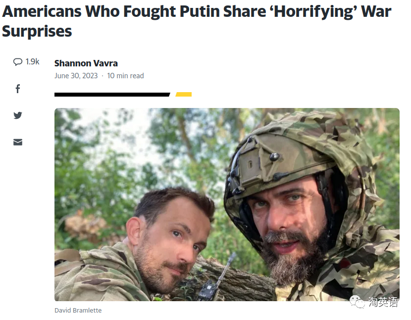 尽管布拉姆莱特此前曾在伊拉克和阿富汗进行过作战部署,但世界各地都有一大批服役人员或退伍军人准备在伊拉克和阿富汗人那里作战,但出于某种原因,他们都没有参加。巴姆说,这次的俄乌战争让他们找到了参加真实战场的机会。