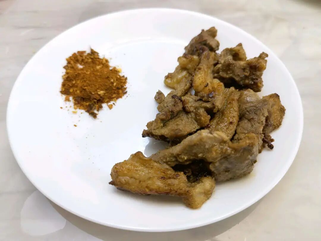 辣椒面最后放旁边蘸着吃,是尊重不吃辣的人的绅士做法,当然家中有小朋友的人也可以选择这个方法,小朋友也会很开心的。