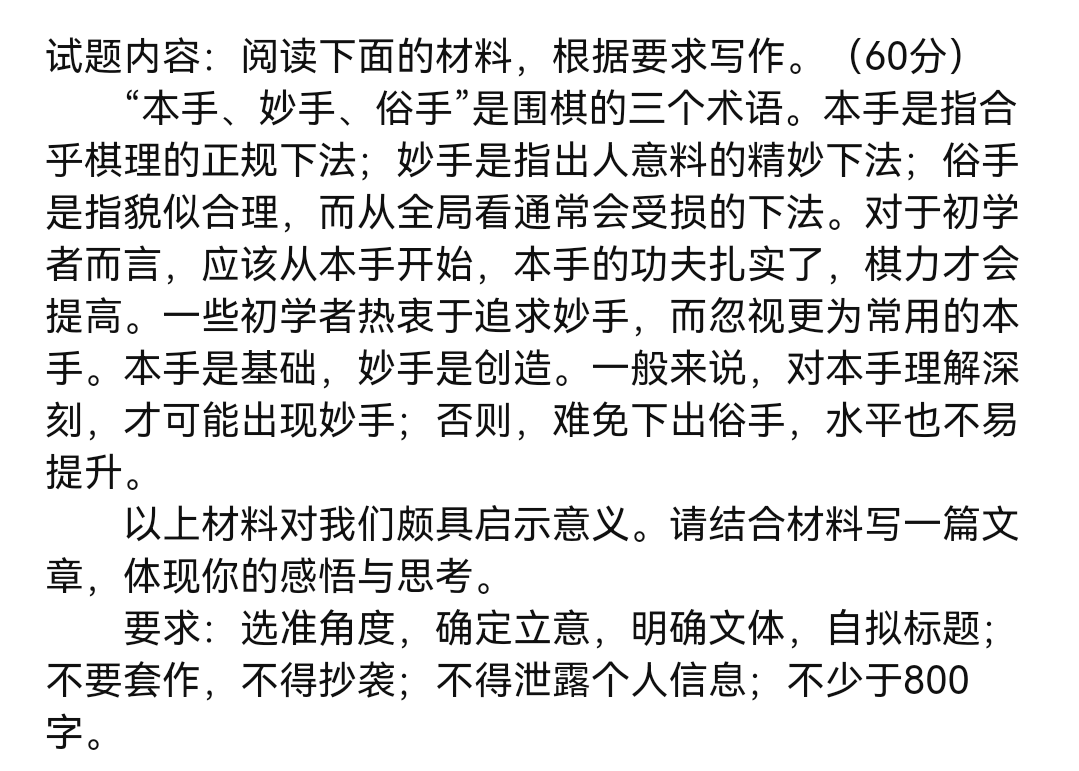 听说了一件事,在围棋里,有三个词语:“本手、妙手、俗手”,这三个词分别对应了三个状态:踏实下棋、精妙下棋、和弄巧成拙。