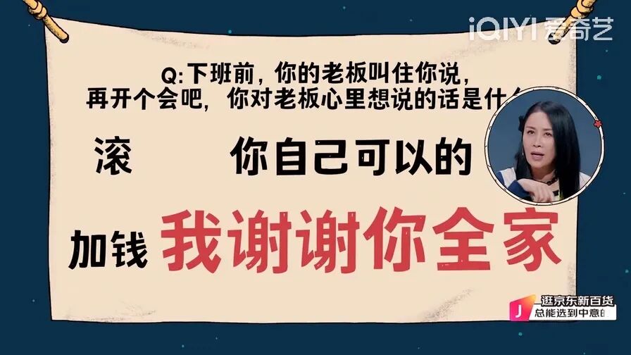 关键来了,前面的看似简单的问题是以快问快答的形式出现的,而且是观众回答,嘉宾从其中选一个,自然是越有趣的答案越受欢迎了。然后就要落到正式采访里了,规定嘉宾只能按提词器回答。