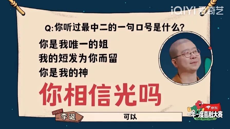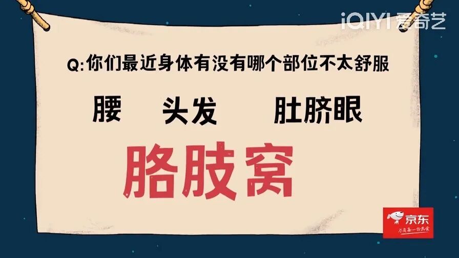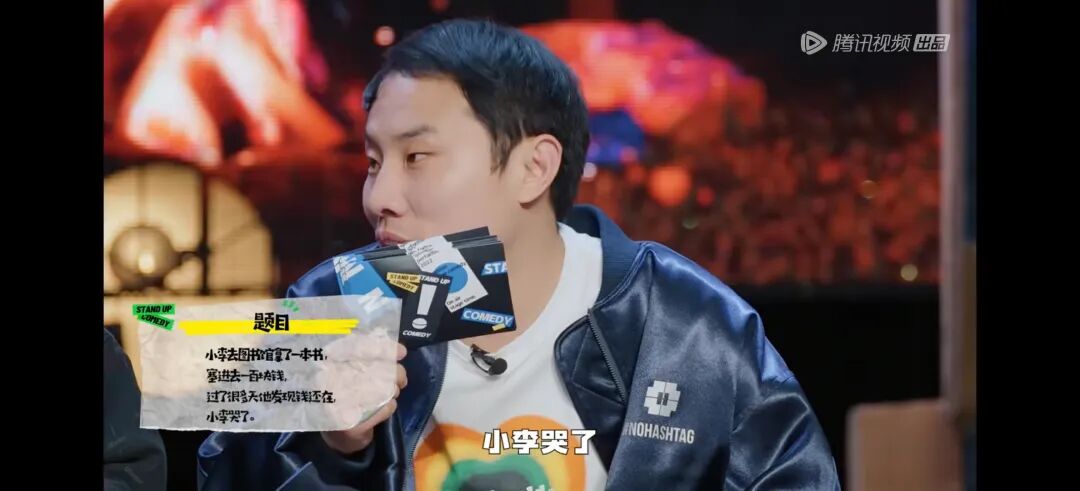 第二个游戏就更复杂了,是《一年一度 喜剧大赛》第二季的开场游戏,让观众回答一些问题,嘉宾从里面选出答案当做固定搭配,用来回答第二轮的采访。因为题干完全不同,所以在第一个题干中成立的回答,放到第二轮题干中就很无厘头,也很有趣。