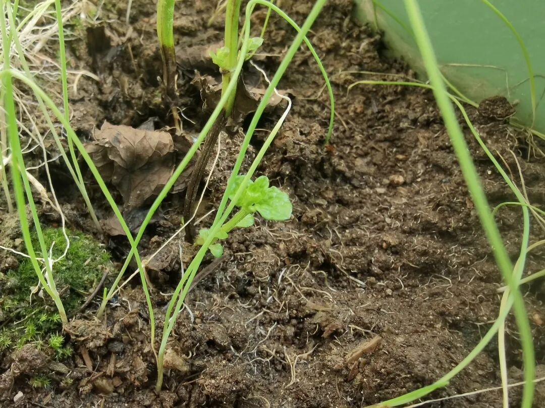 就是这样的一个毫无规划、过分随意的小菜盆,在一个秋天里充满阳光的中午,我蹲着打算看看之前移栽的薄荷有没有出现传说中的“爆盆”现象时,发现了一些不一样的东西。没想到,完全没有用心打理的这片土地,竟然出现了意料之外的惊喜。