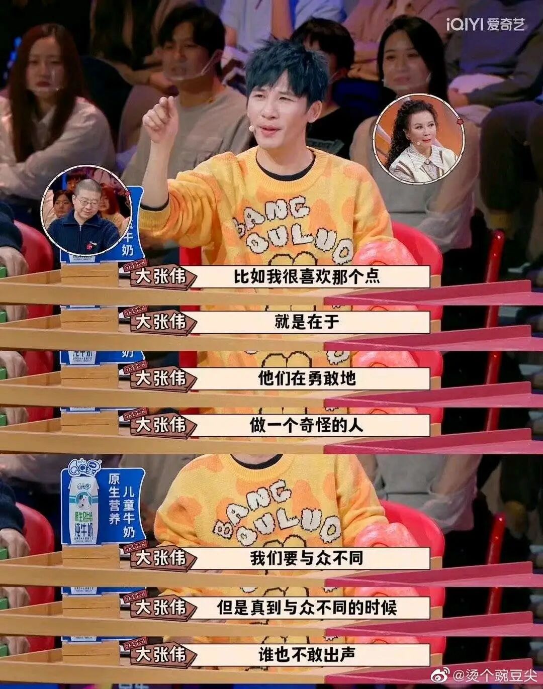 这个奇怪的角度,就是最能打动大张伟的那个点“他们在勇敢地做一个奇怪的人”,不仅自己奇怪,还大声告诉观众自己很奇怪。