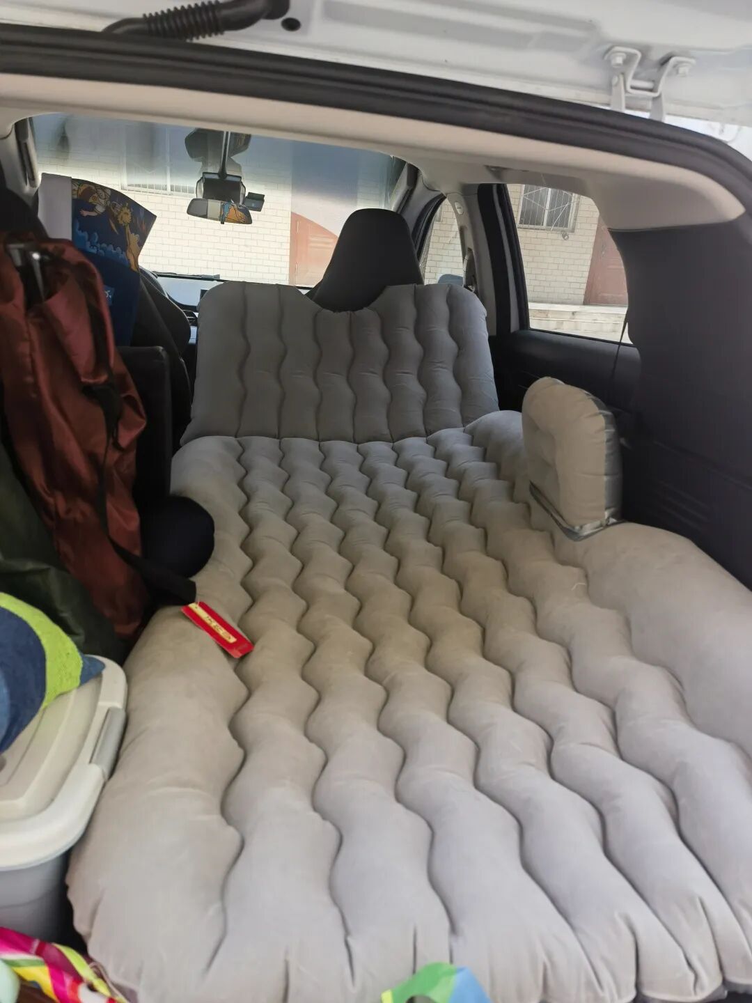 事情要从中午说起,我精心给我柚在车上铺了个卧铺,把后排座椅放倒,然后放上充气床那种。