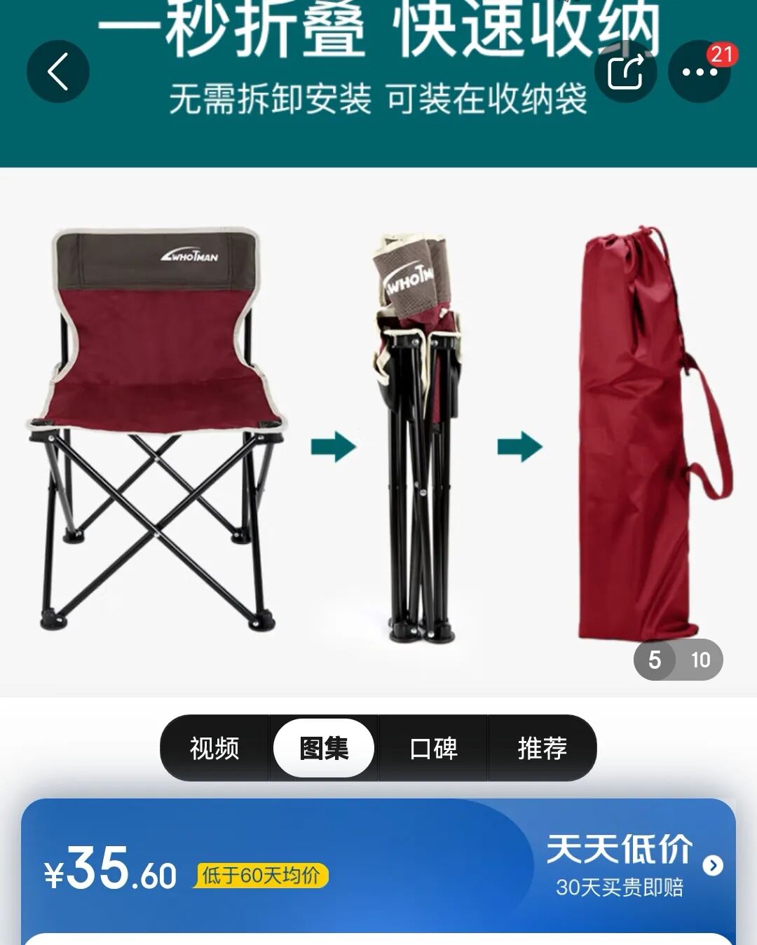 顺便再说一下,某音上的直播间卖货,因为只给几十秒时间抢购,很容易让人没有看到货物的缺点,只看到优点,就急于下单。我就买过非常便宜的椅子,也非常舒服,但是收纳起来太大太重了,都快赶上我的露营推车了,所以可利用的场景自然少之又少。