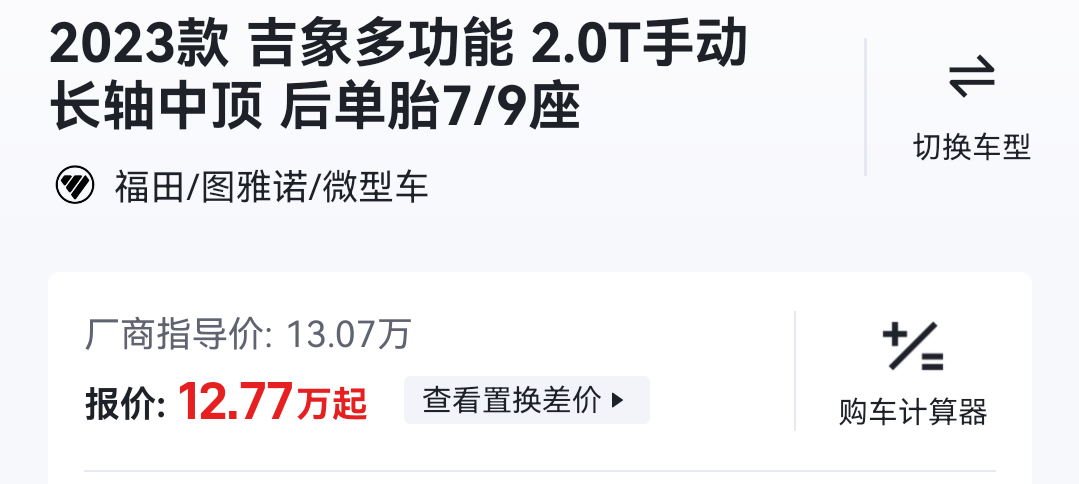 其他不那么有名的品牌,像是福田图雅诺、江铃特顺之类的大约在12万左右。