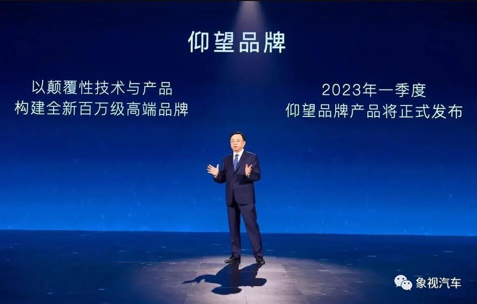 首先,在热销的王朝系列、海洋系列、腾势品牌之外,比亚迪将以颠覆性技术与产品,构建全新百万级高端品牌——仰望,明年一季度正式亮相首款车型。