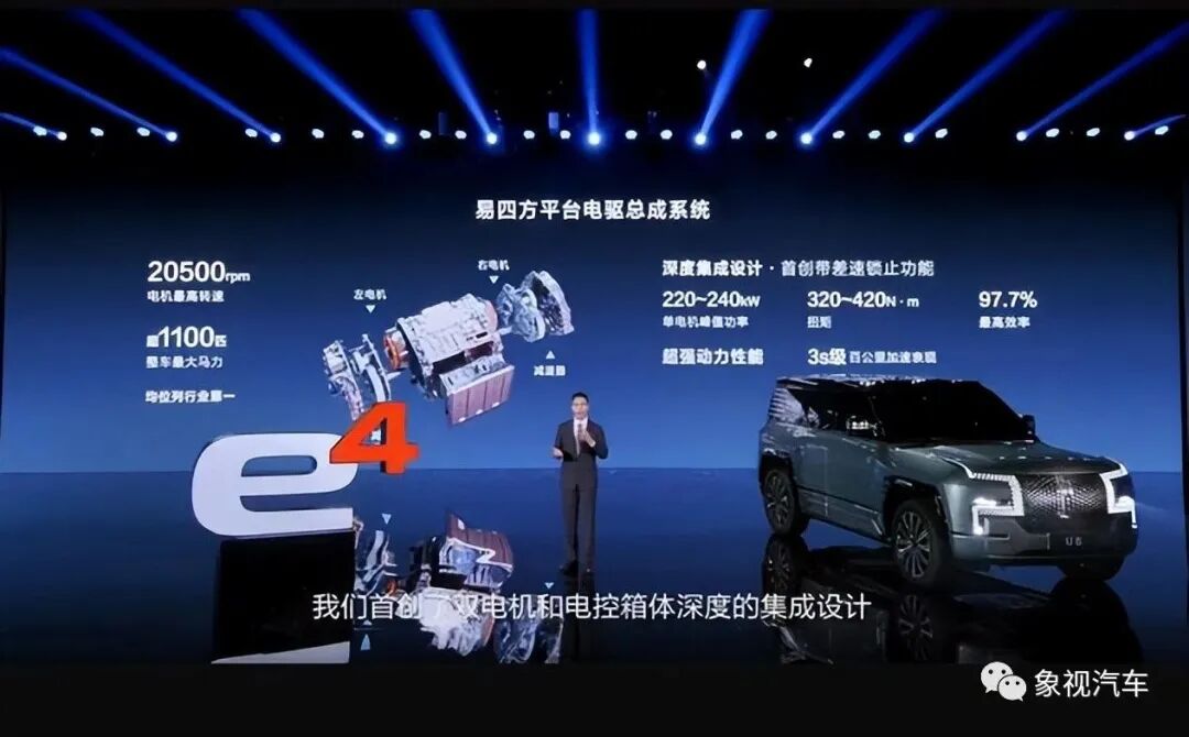 其中,U8定位是百万级新能源硬派越野SUV,采用“时空之门”的设计理念,极具未来感和科技感,整车马力超1100匹,百公里加速3秒级,将与路虎卫士、奔驰大G同台竞技;