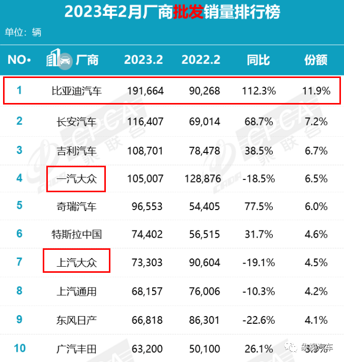 显而易见,无论是在批发还是零售规模上,南北大众只有加在一起,才能够与比亚迪相抗衡。