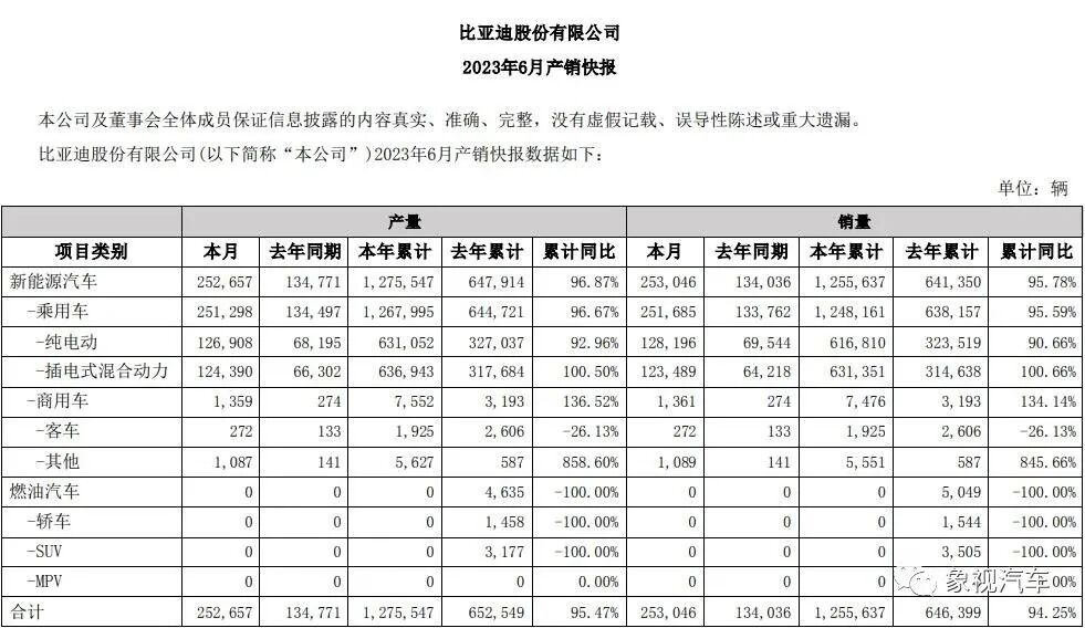 首先,产销快报显示,比亚迪6月销量253046辆,而产量为252657辆。显而易见,销量大于产量。