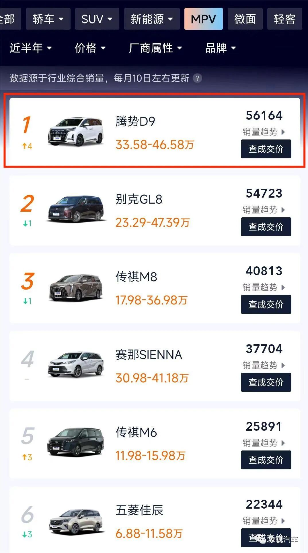 订单量破10万辆,连续4个月交付过万,累计交付8万辆,打破MPV市场几十年的固有格局,多次问鼎MPV销冠……