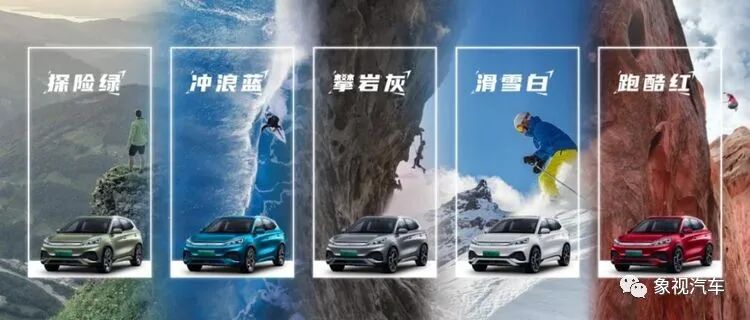 元PLUS外观颜色灵感源于运动,冲浪蓝、滑雪白、攀岩灰、探险绿、跑酷红五款色彩,代表了元PLUS的觉醒精神。