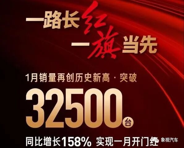 每一次,红旗公布销量都是车企中最为积极的,因为成绩太好了。销量暴涨,对于红旗来说,已经不算是新闻了,这是常态,红旗长年累月都是销量暴涨。不过1月份的红旗销量,还是值得说说的。根据红旗官方公布的最新数据,1月份一共售出32500辆新车,同比暴涨158%。这样亮眼的成绩,不仅让红旗再次提升了自身高度,更上一层楼,而且首次实现月销破3万辆,等于2018年全年的销量。