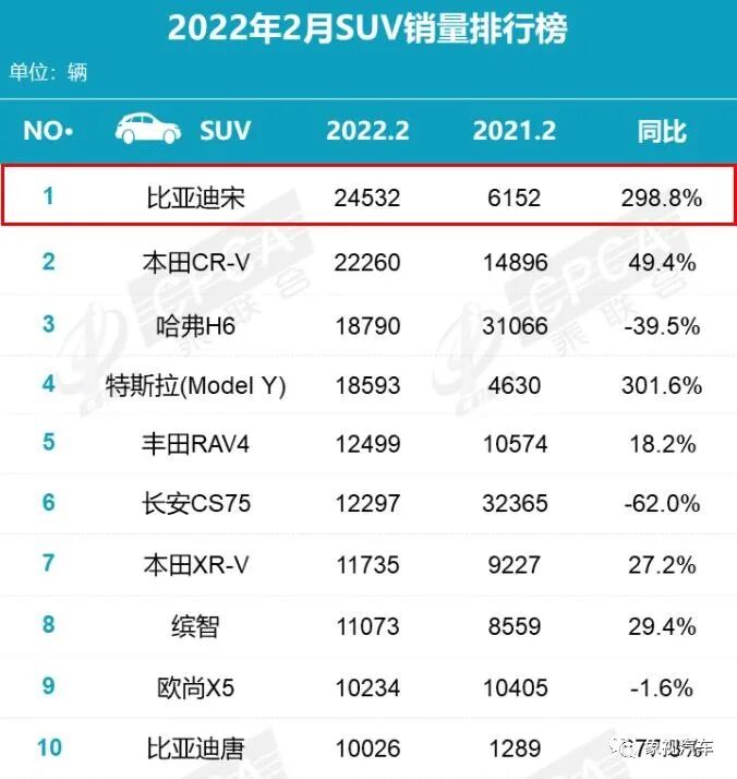 在SUV领域,比亚迪则取得了更加亮眼的销量成绩。