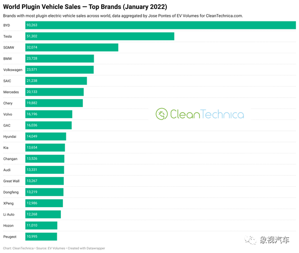 根据外媒CleanTechnica网站公布的数据,今年1月份全球新能源销量榜单上,比亚迪大幅领先特斯拉,将全球新能源汽车销冠的桂冠夺回。