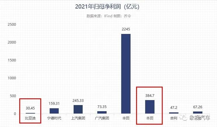 无论是收入还是赚钱能力,比亚迪与本田的差距都很大。