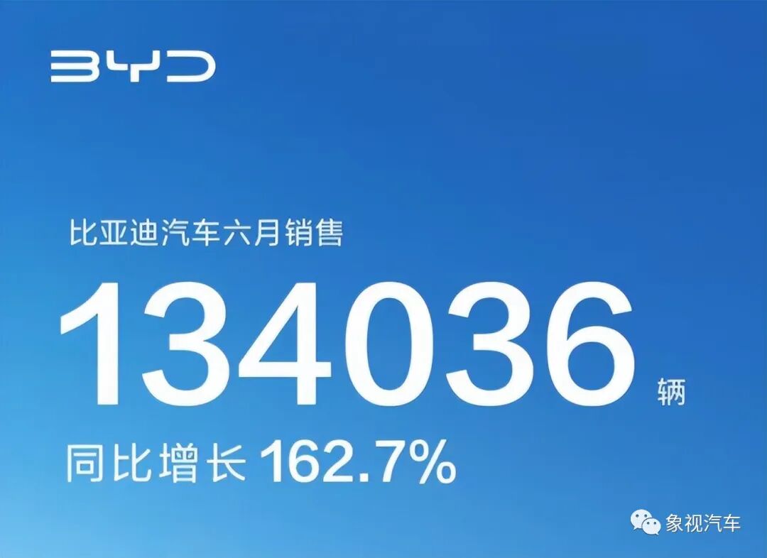 从来没有一个车企,能够像比亚迪这样,销量持续暴涨,简直卖疯了。公开的产销快报显示,比亚迪6月份销量高达13.4万台,同比暴涨162.7%,销量再创历史新高,已经连续四个月销量突破10万台。