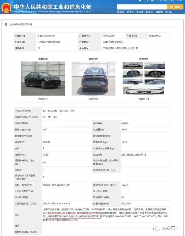 于是,比亚迪站了出来,算是“拯救”了丰田。日前,丰田bZ家族第二款纯电车bZ3,正式登录工信部申报目录。信息显示,bZ3所搭载的磷酸铁锂蓄电池电池和驱动电机,均来自于比亚迪。