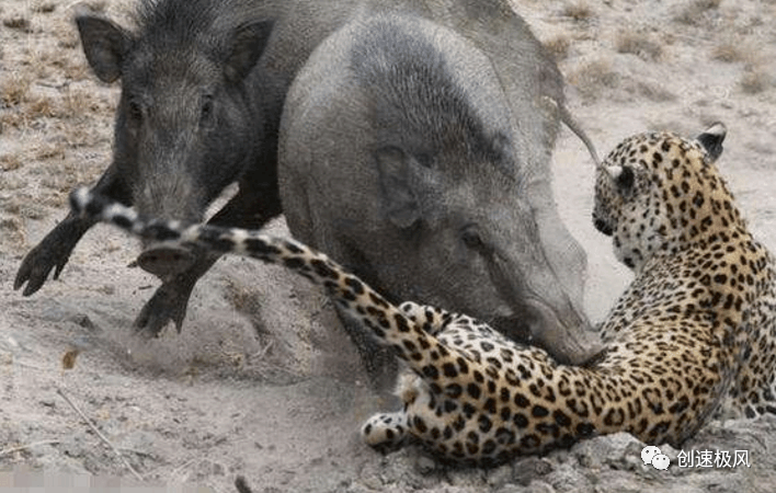 当然了,在这种情况下,花豹的结局是毫无疑问的。那如果它没有被车撞击碾压,是个健康个体,还会遭到野猪的欺辱吗?众所周知,花豹本就属于大型猫科动物,是食物链的顶级猎食者之一,在生态位上仅次于老虎、狮子(就栖息地而言)。它们的性情异常凶猛,擅长伏击偷袭,通常躲在高树上蹲守,或者暗中潜行接近猎物,等待合适的时机一举扑击猎杀。它们本就以有蹄类动物为食,野猪就是花豹的猎物之一。而且花豹的感官发达,动作敏捷,善于爬树,也善于跳跃;犬齿大而锋利,裂齿也特别发达,有利于擒获和撕扯猎物。但是这也要考虑到一些个体情况,比如:花豹和野猪的雌雄、体型、年龄。通常公豹会捕杀成年野猪,母豹会挑选弱势个体下手。原本花豹的体型就不大,但是野猪有超大型个体,如果遇上几百斤重的野猪,它们自然是不会发起攻击的。