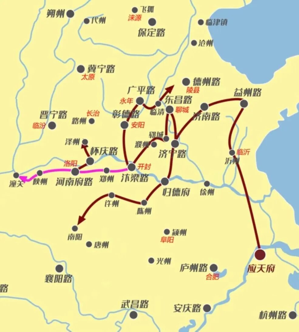 半个月后,明军顺利跨过黄河故道(南宋初期黄河下游改道),攻陷邳州(江苏雎宁西北),然后在邳州分兵。