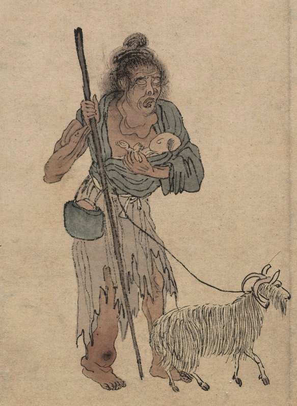 走了半天路,他又看到一个老妇人,在路边煮幼儿,边煮边哭。