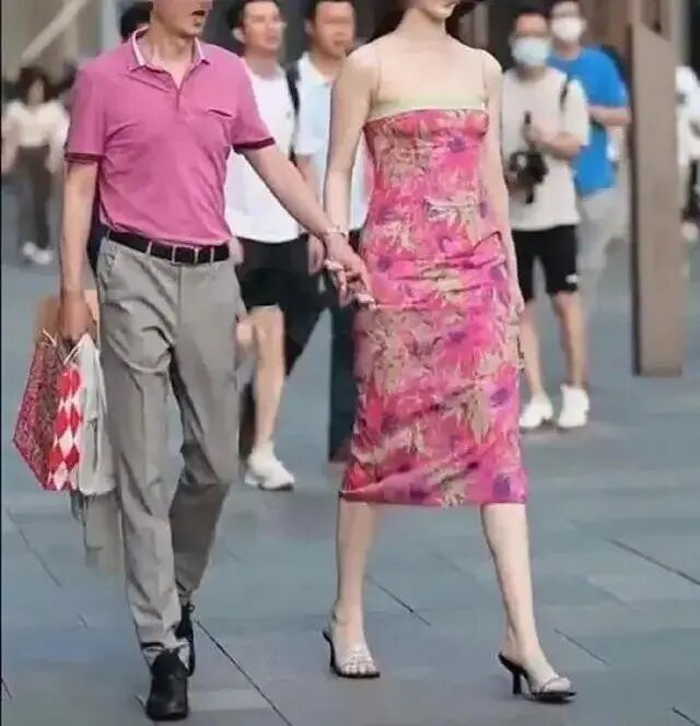 某国企领导,身穿情侣装,牵手辣妹漫步街头。二人被街拍摄影师无意中拍到,发到抖音。