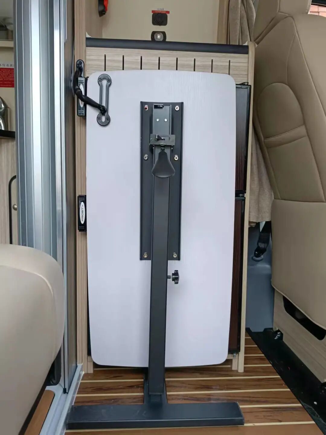 车上配备了一张可移动可折叠的桌子,平时不用的时候可以折叠起来放在固定的位置,增加车内活动空间,不会有什么影响,如果要使用则可以打开放在二排座椅前方,办公或是吃饭都很方便