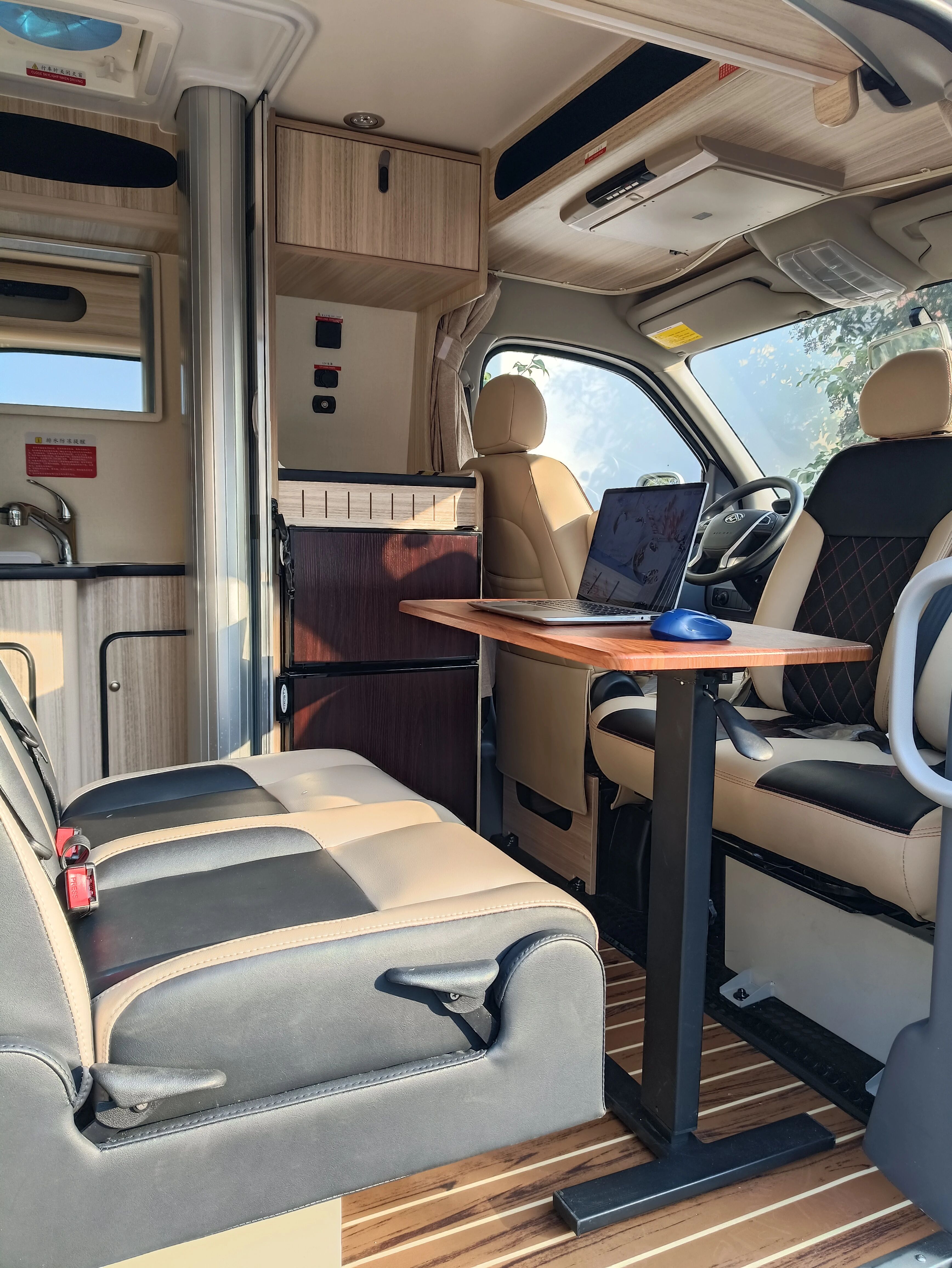 此刻,车外10度,车内20度,坐在车内写下这篇文章,来介绍下我新提到手的这台房车,写作环境见下图,昨天下午天气好拍了这张照片