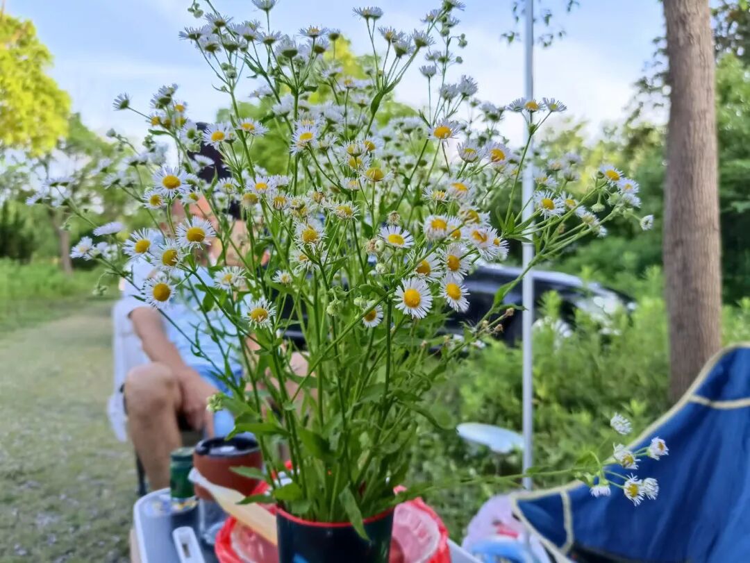 6月虽已解封,但仍无法离开上海,但6月的每个周末都会在外露营,甚至在某个周末看天气不错,专门在家准备了吃的去到户外煮火锅。吃饱喝足带孩子去采一把野花,随便拿个瓶子装起来都异常好看