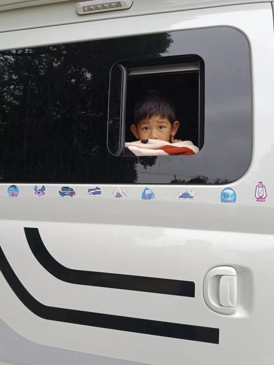 房车使用一年,其他的文章写了很多的体验,一句话就是我个人觉得很棒。如果让我说下跟之前开SUV最大的不同的话,那一定是因为车子的大小,虽然只有5米的长度2米的宽度,从参数上看并不比SUV大多少,但实际开起来差别还是很大的,首先是右侧盲区较大,右转的时候要格外小心,我有两次就因为右侧盲区大差点出车祸,现在想起来也有点后怕。其二是停车不好停,尤其是小区里停车位比较小的情况,虽然一个车位可以停的下,但是留给两边的位置不多,旁边的车子如果不是很注意的话就容易剐蹭,我的车子停在车位上左前方就被剐蹭了,找不到人,那就贴个好玩儿的车贴吧