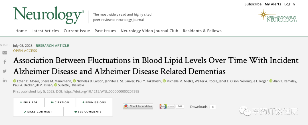 Ethan D. Moser, Sheila M. Manemann, etc, Association Between Fluctuations in Blood Lipid Levels Over Time With Incident Alzheimer Disease and Alzheimer Disease Related Dementias. Neurology Jul 2023.