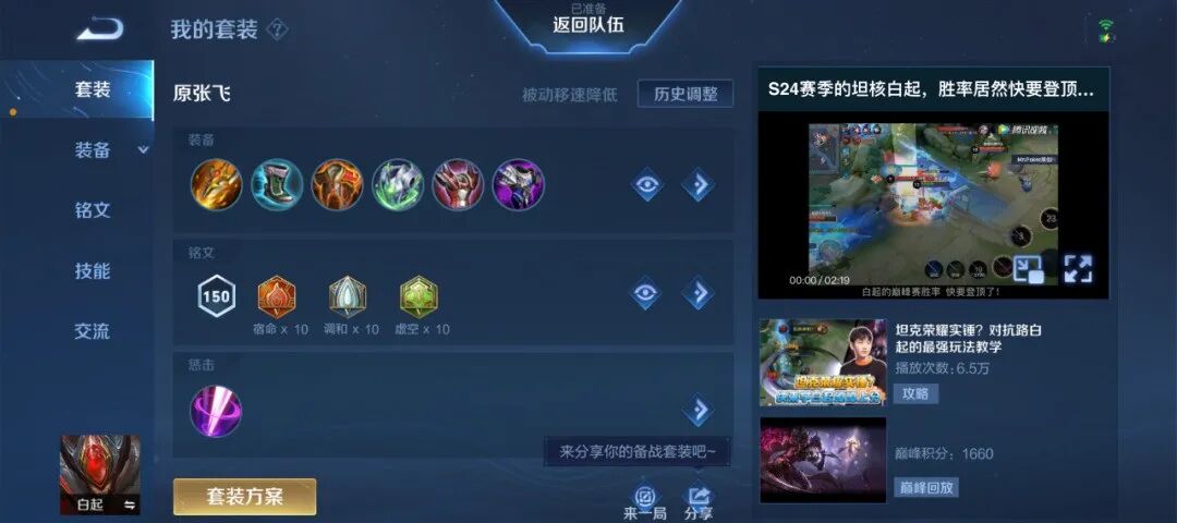 黄刀白起的铭文、出装可以看上图,总体来说就是将肉刀换成了黄刀,主要有以下几个重点:
