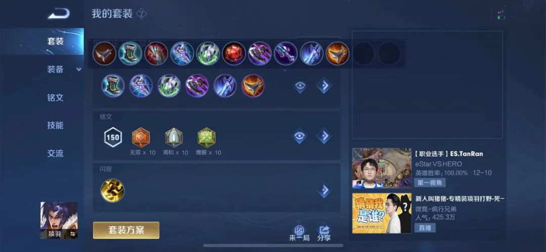 出装和铭文方案建议使用上方这套,主要有以下几个重点: