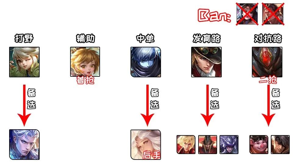 ②在对面突进型英雄较多的时候,可以选择不要射手,替换为李信、蒙恬、马超等中后期有强力输出手段的战士。