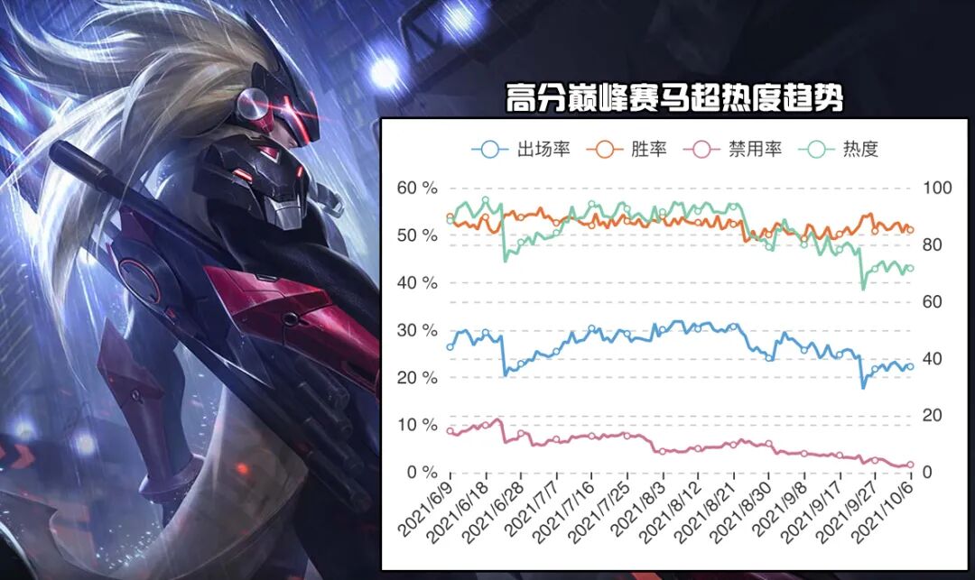 而从上个赛季开始,高分巅峰赛马超热度一直在降低,而这个赛季开始才开始回暖,出场率在不断的上升。