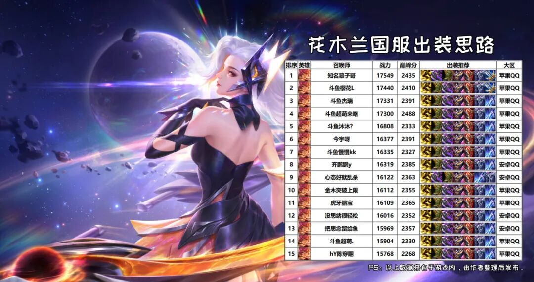 ②木兰前几件的思路变化不大,只有最后一件是在破军、纯净苍穹之间二选一。想极致的输出就破军,保障容错率则纯净苍穹。