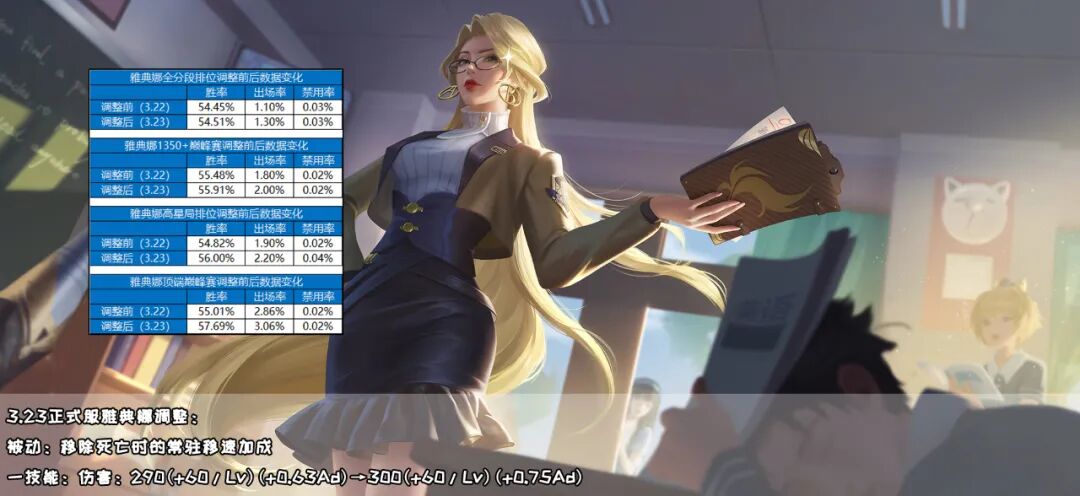 主要是因为出场率太低,加上调整又比较平衡,雅典娜的数据波动会比较正常,所以还是要看后续的变化。