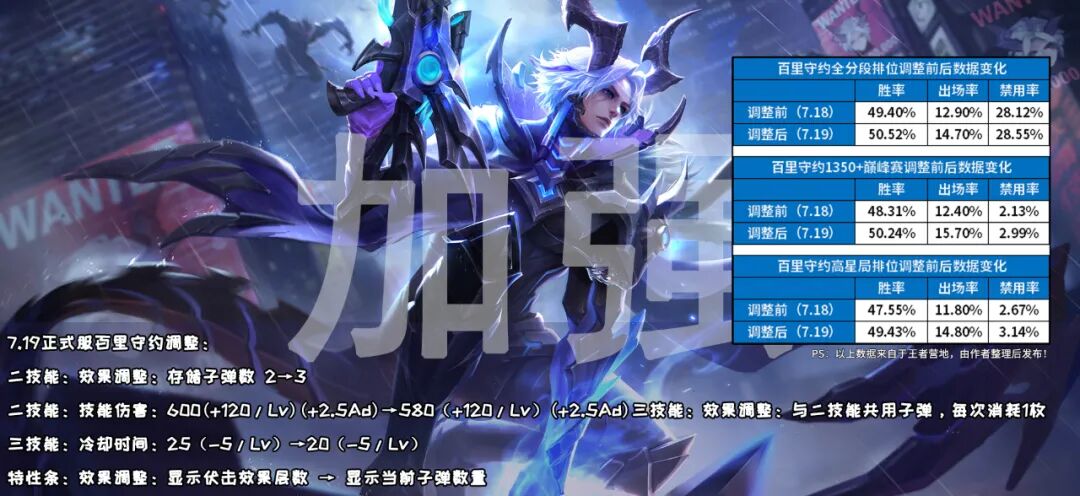 在加强后,守约的各分段出场率、胜率都有所提高,这里有以下三点原因: