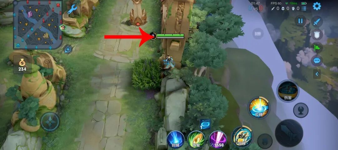②注意观察小地图,当你发现对面后排出现在对面野区时候,可以跳跃2座墙,然后突进秒杀对面后排。