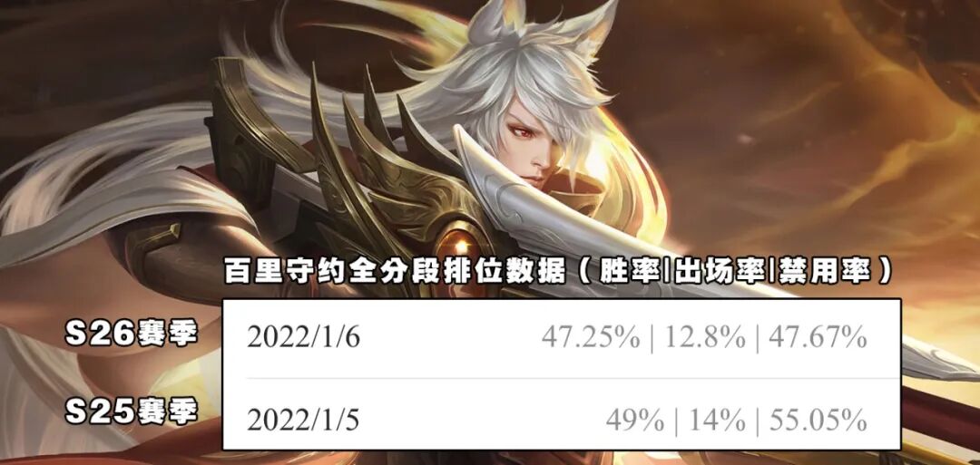 守约的全分段排位数据都有所下降,最重要的原因则是由于冰霜冲击的改版,其被动属性非常克制守约,能够很大限度的降低被守约2技能超远程消耗甚至收割的风险。