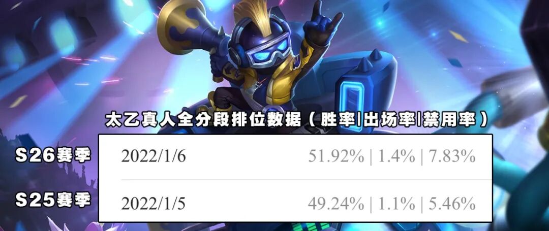 这两大老牌强力辅助在新赛季的胜率都有所增加,可能是由于赛季初玩家们五排车队的拉动,但具体情况仍有待观察。有小伙伴知道是什么原因吗?欢迎在评论区下方与我讨论。