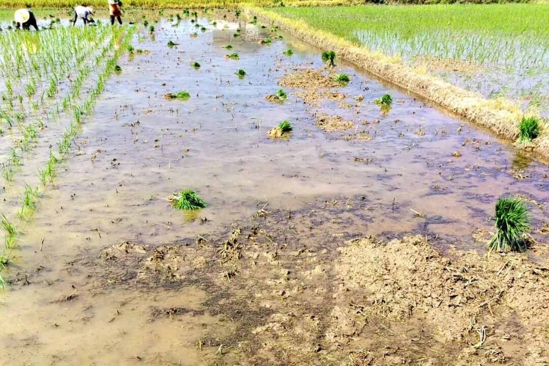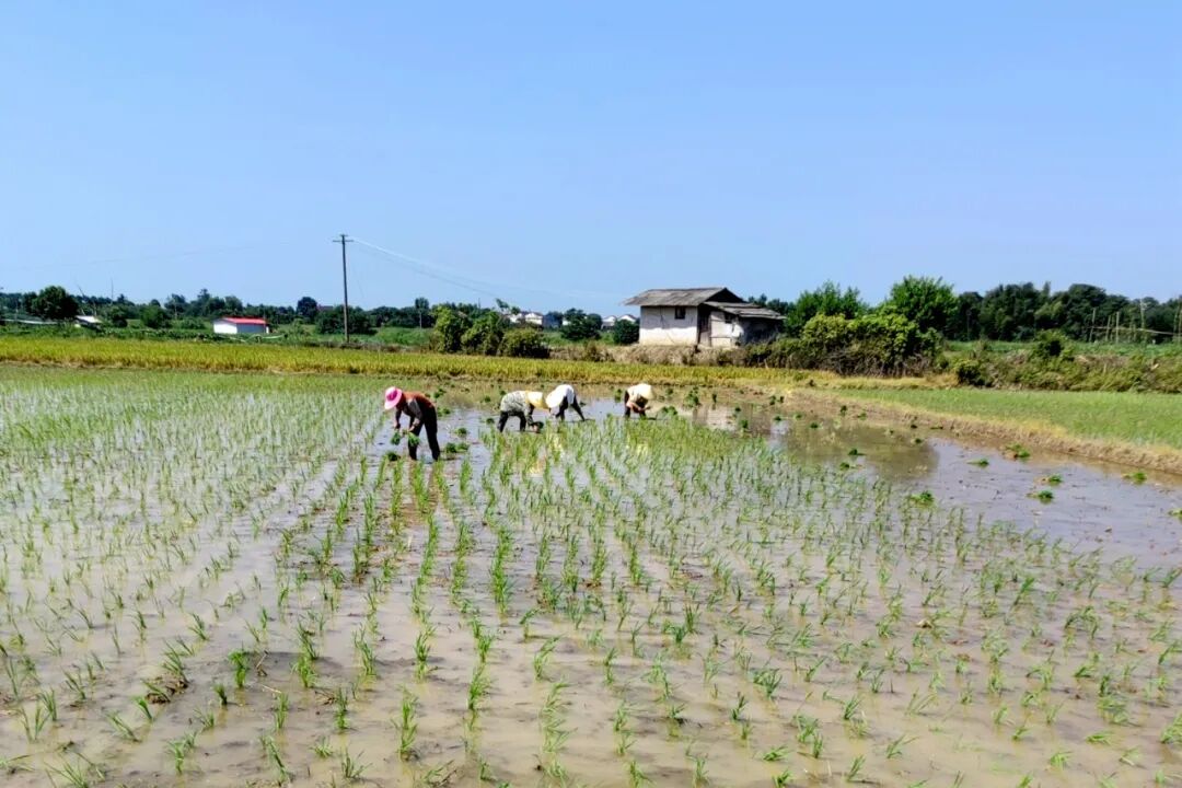 也许你不敢相信,这是2023年7月11日拍摄到的人工插秧场景,这种70、80年代农村插秧的场景、难道如今又回来了吗?